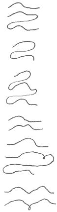 The dash after "cold" doesnt stop us from easily going on, notes rising slightly on "only," and again on "warm," and then to "hands." The first line is not connected in loop only because the thought is over, as are most single lines, an ending thought or just a couple of solitary adjectives of spring or summer, it is has not been noticed. Further within, I have wondered how much we are sentence prone for all these loops make wonderful sentences and that favorite haiku, considered digestible for those not eager to its form, have those constant continuing loops and sentences. Basic, the music is easy and has a fun beat. examples:
